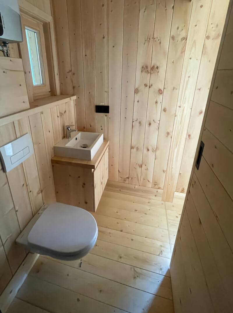 Die integrierte Küche ist platzsparend geplant und gleichzeitig voll nutzbar – ideal für den Alltag im kompakten Wohnraum. Auf Wunsch lässt sich der Komfort individuell erweitern: Optional bieten wir zusätzlichen Luxus wie gemütliche Holzöfen, moderne Fußbodenheizungen sowie nachhaltige Photovoltaik-Systeme an.